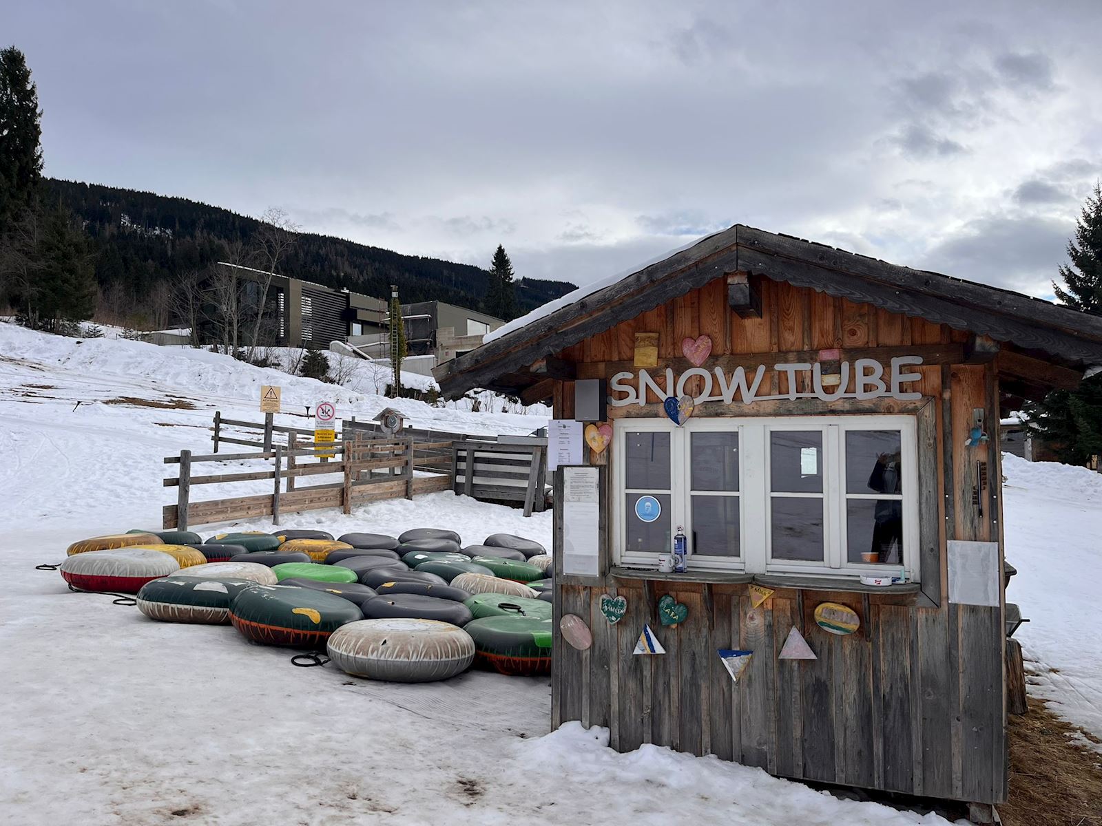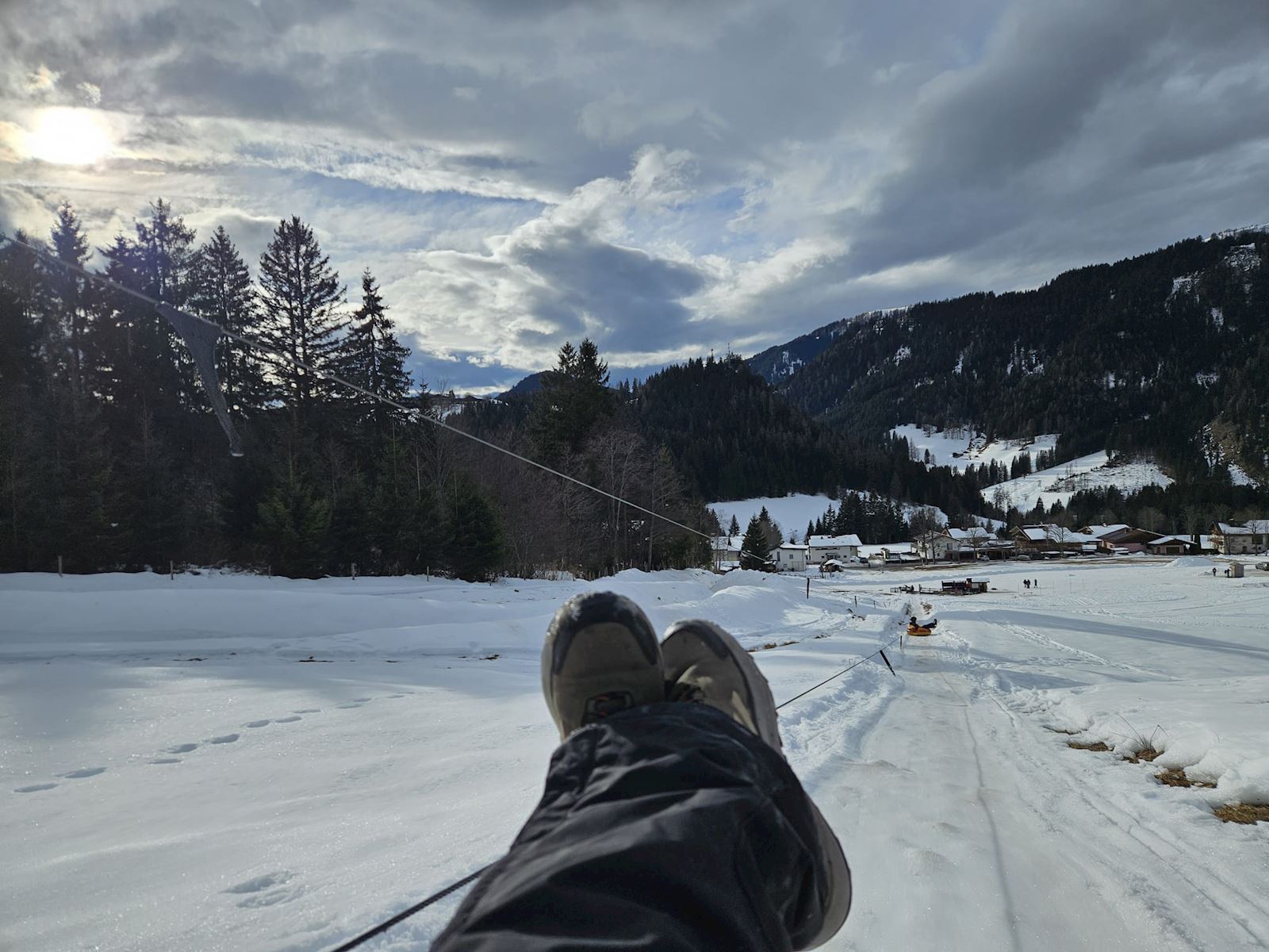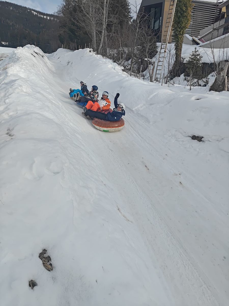 Er stond ook nog zoiets als Snow Tubing op het programma - in een plaatsje niet ver van Huttau vandaan. Dag was ronduit geweldig! Heerlijk in een opgeblazen autoband naar beneden rutschen.