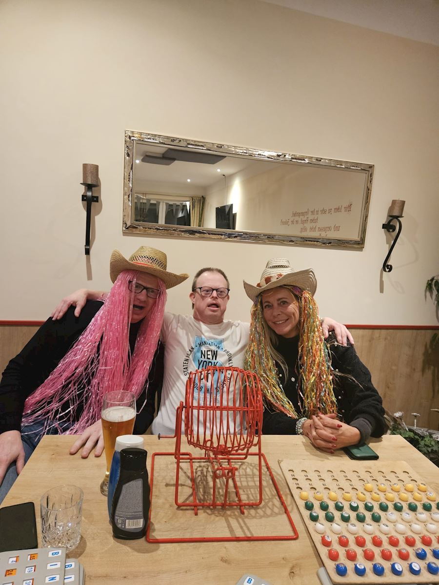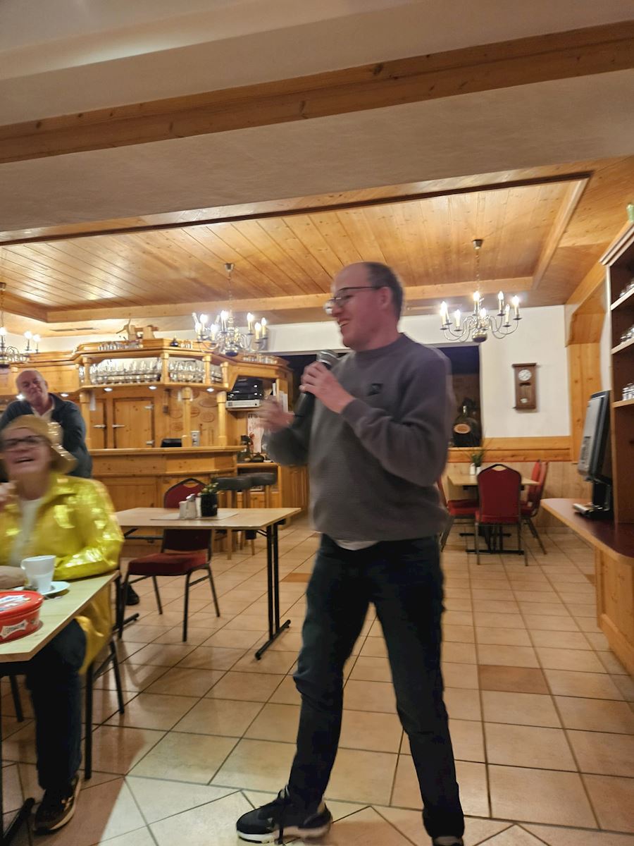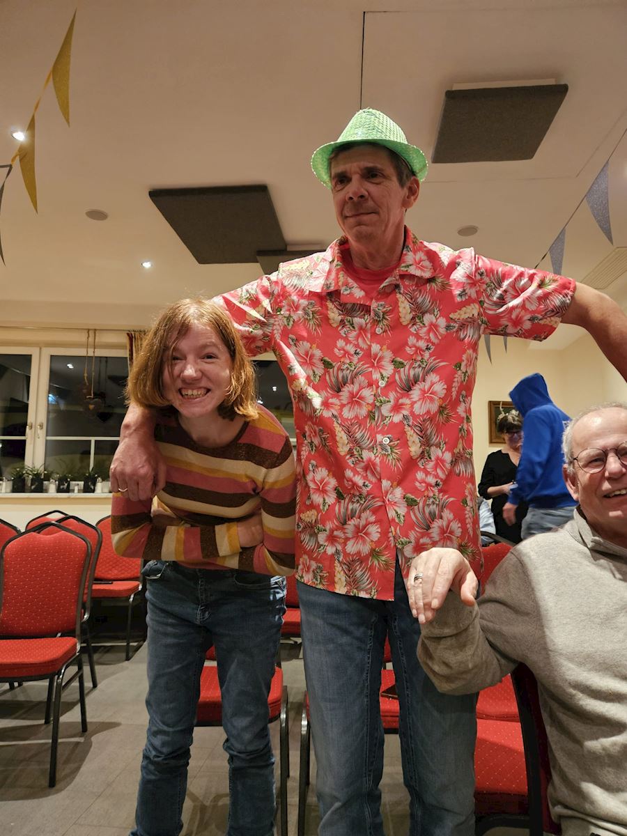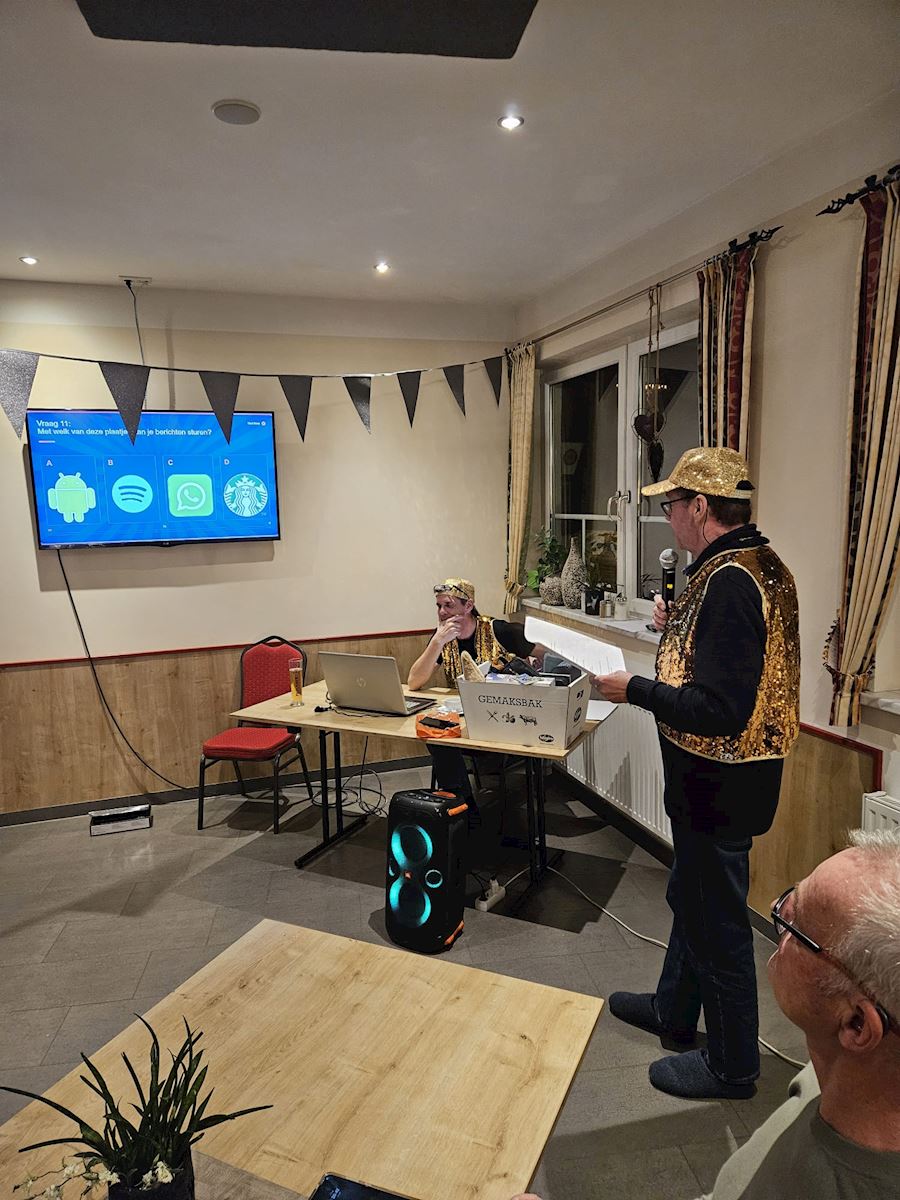 Op een paar foto's zie je heel mooi een swingende Marco die bij het spel Hitster heel mooi mee gezongen heeft!