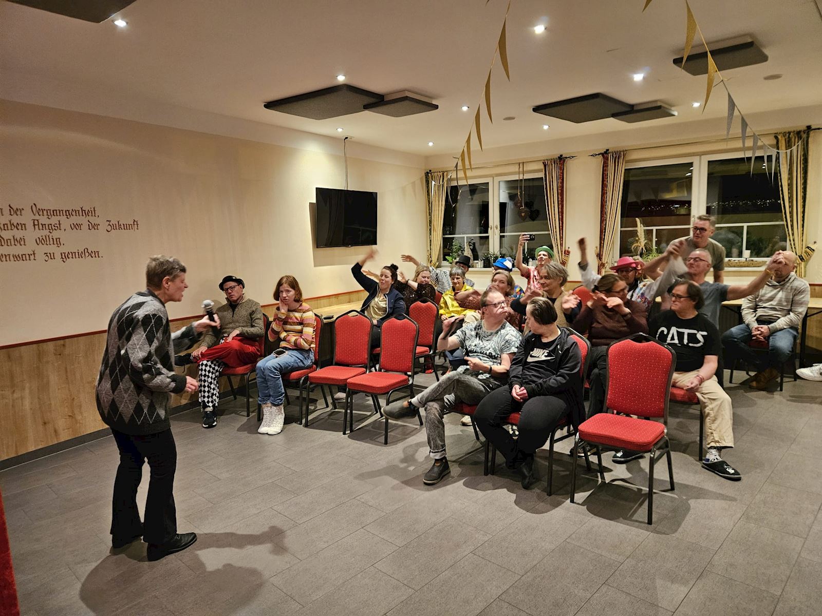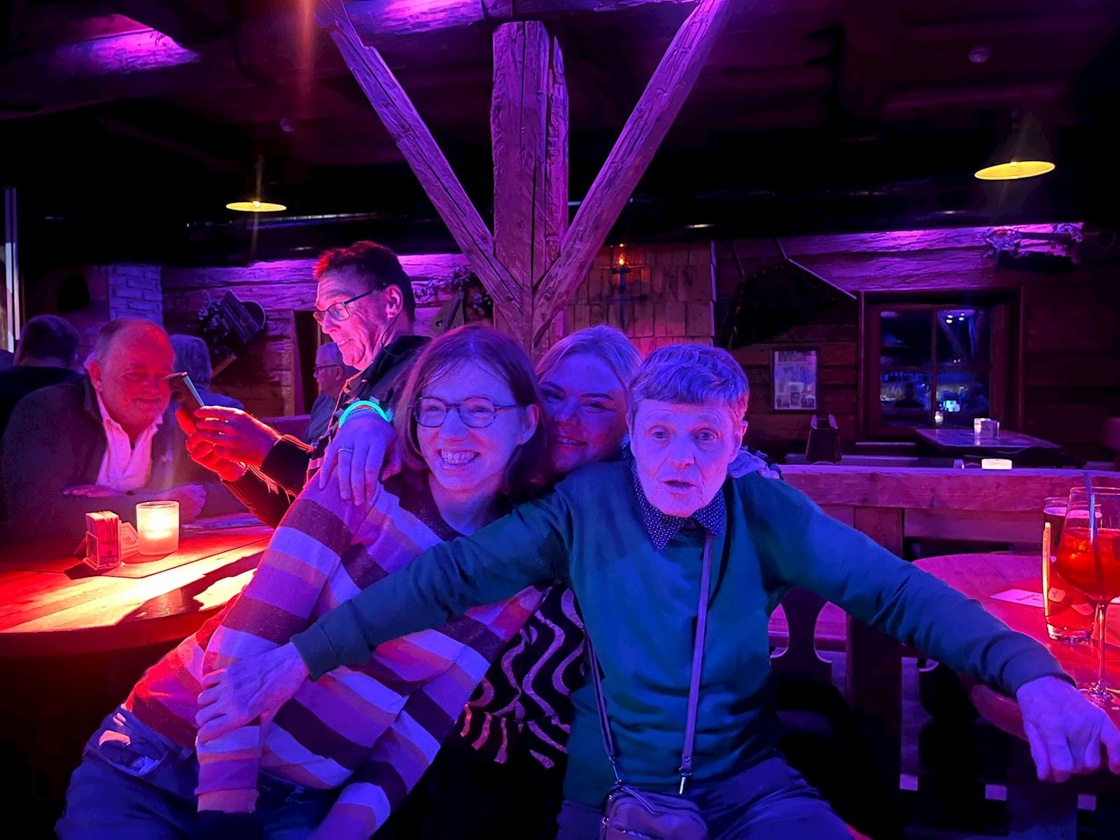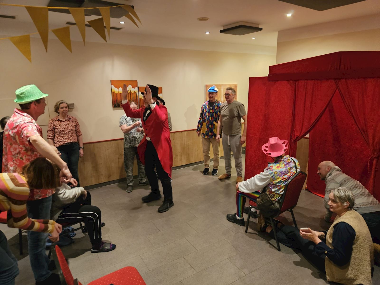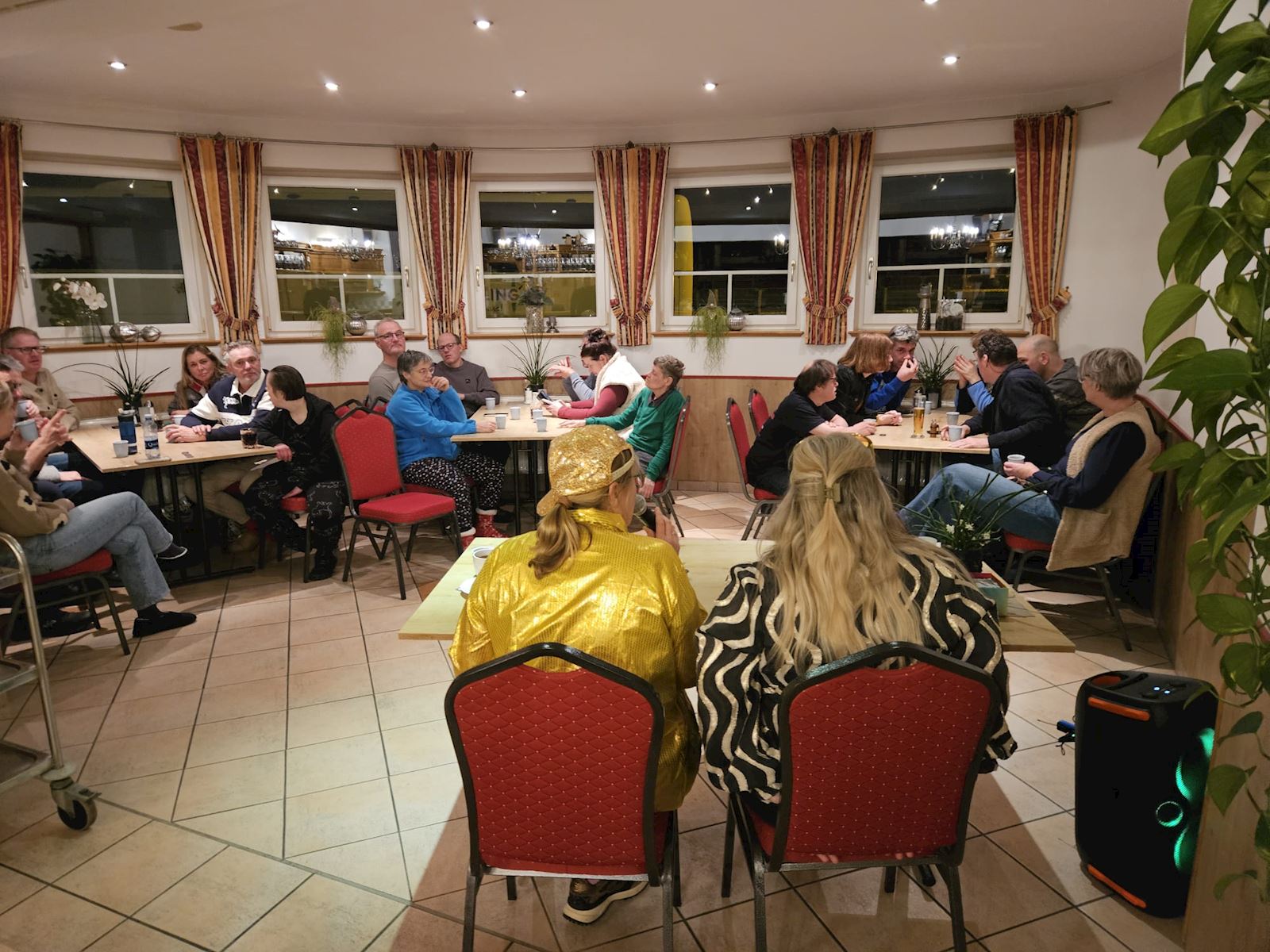 Op een paar foto's zie je heel mooi een swingende Marco die bij het spel Hitster heel mooi mee gezongen heeft!