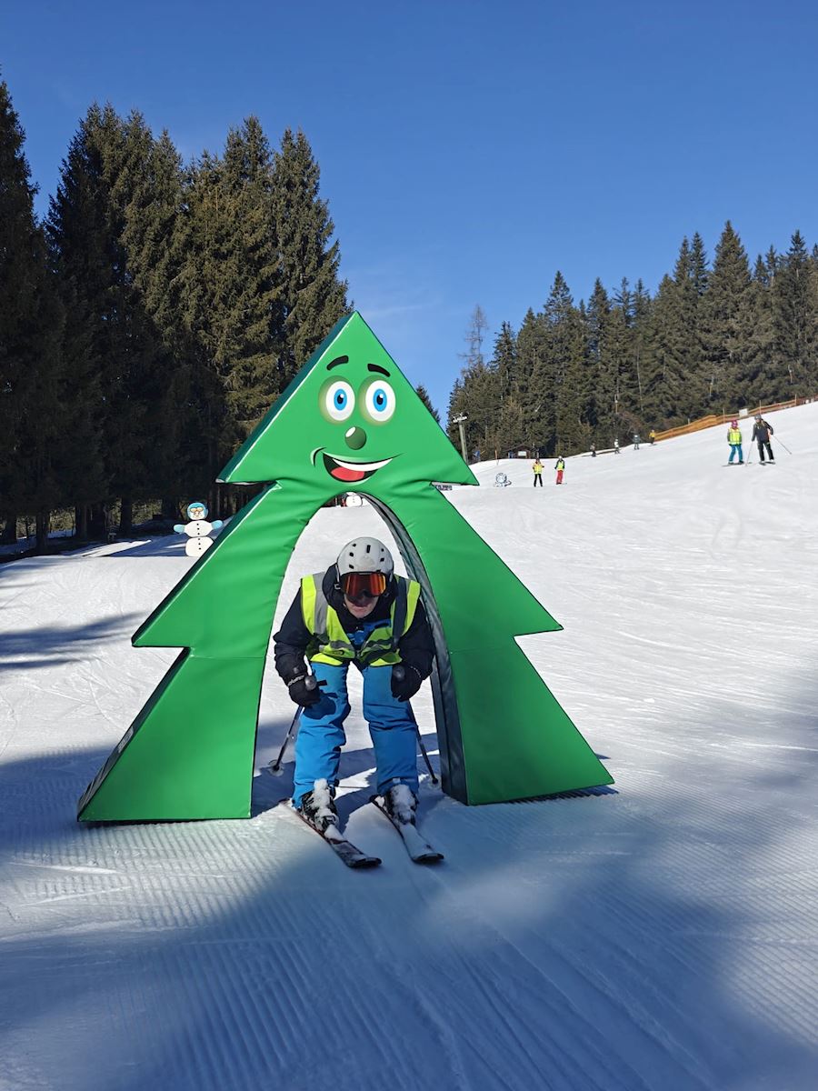 Ook werden er allemaal leuke oefeningen tijdens het skieen gedaan - zoals onder een poortje door skieen. Altijd leuk!