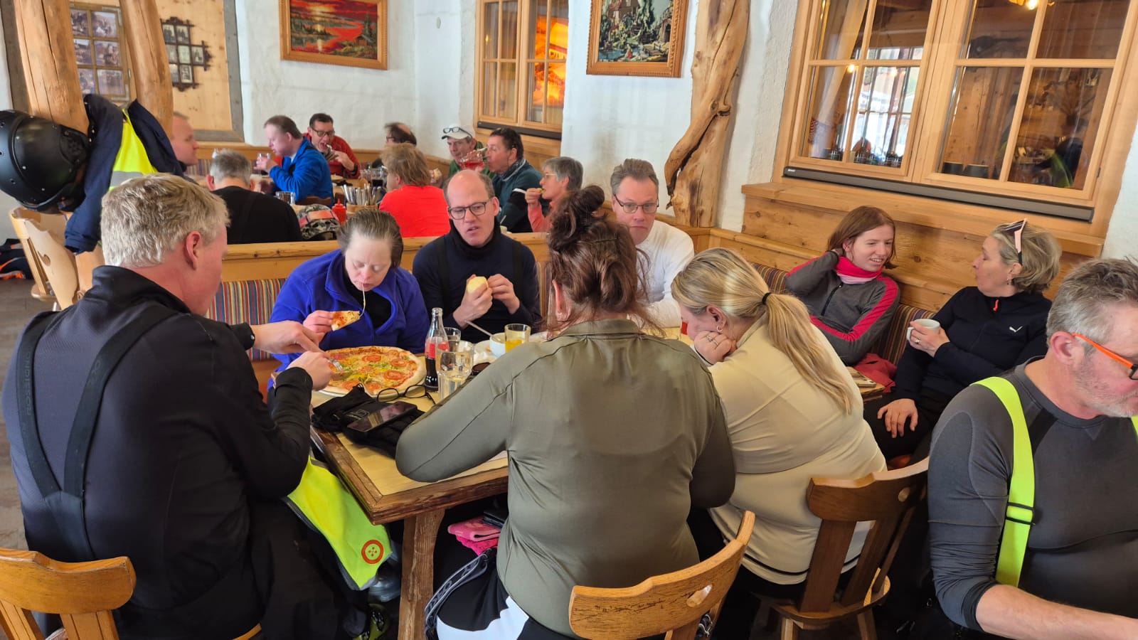 Enfin, we zijn veilig gearriveeerd (iets na 11:00) en iedereen heeft zich lekker in zijn kamer geinstalleerd. De lunch bestond uit de bijzondere pasta van Hubertushof.