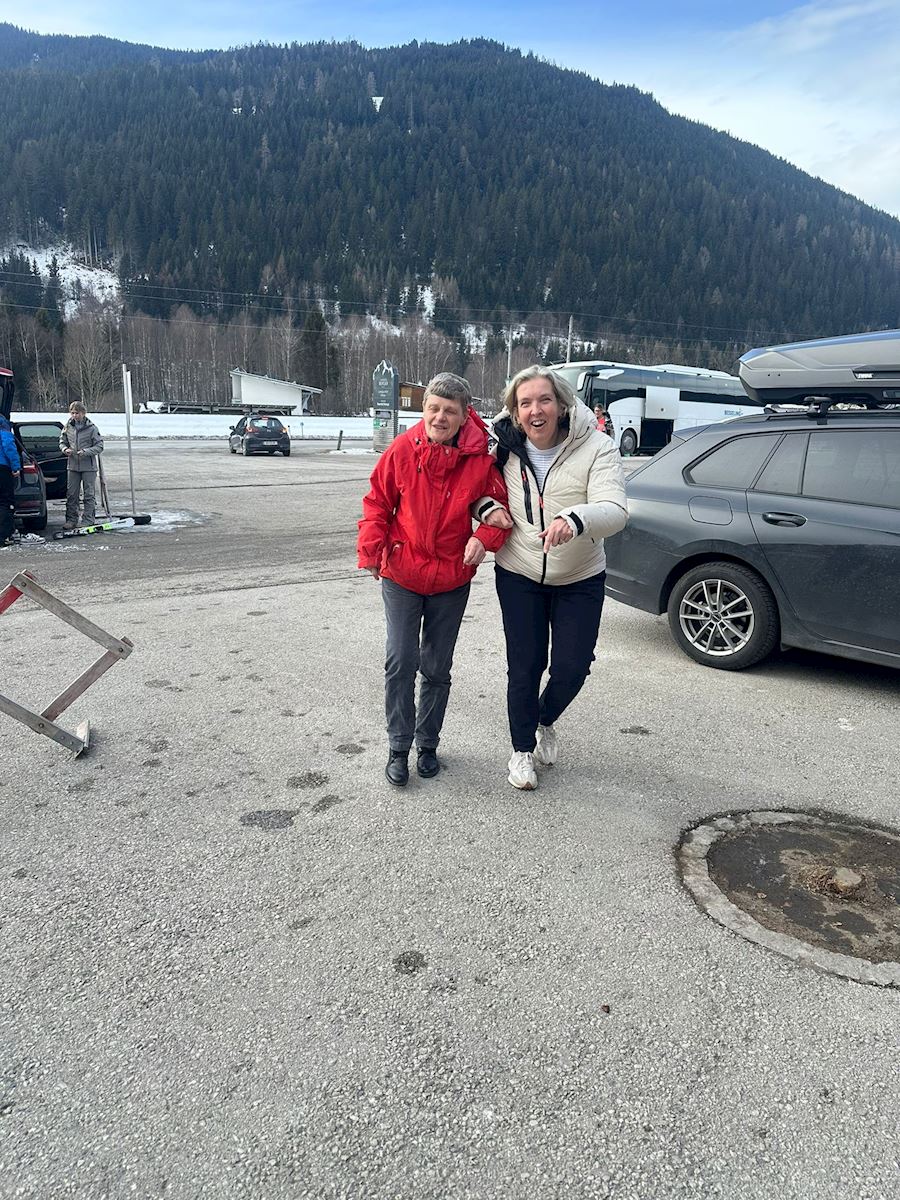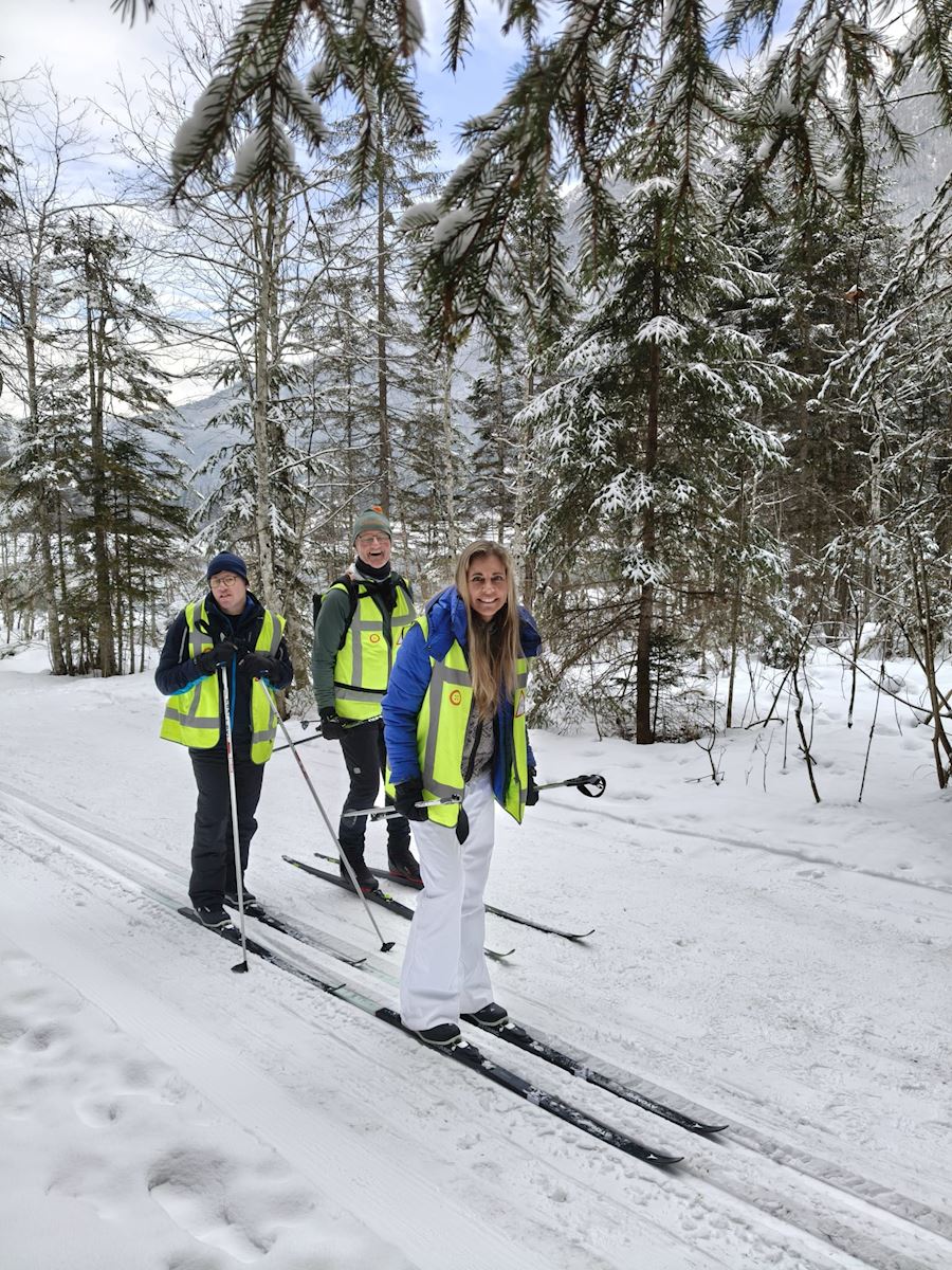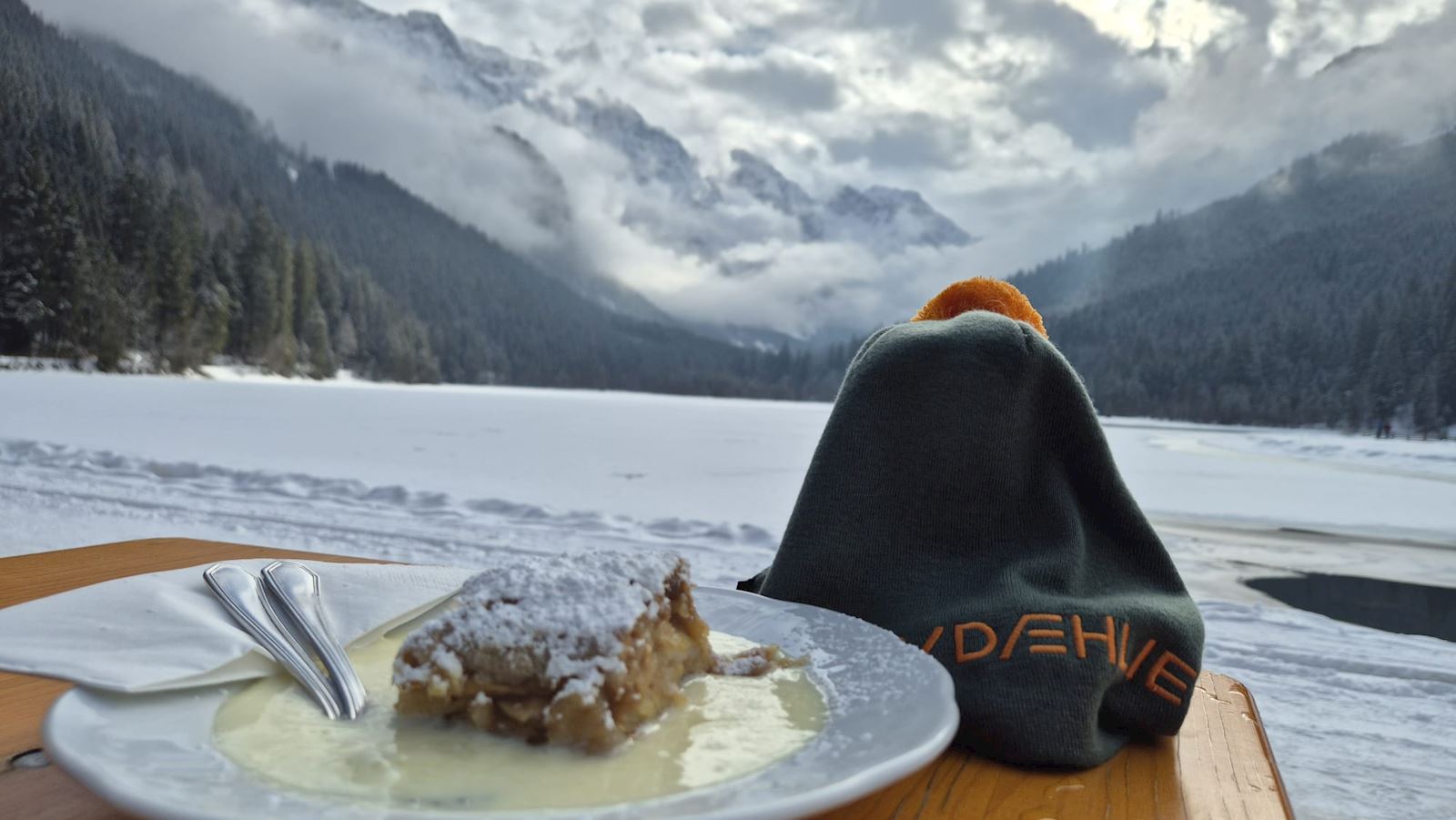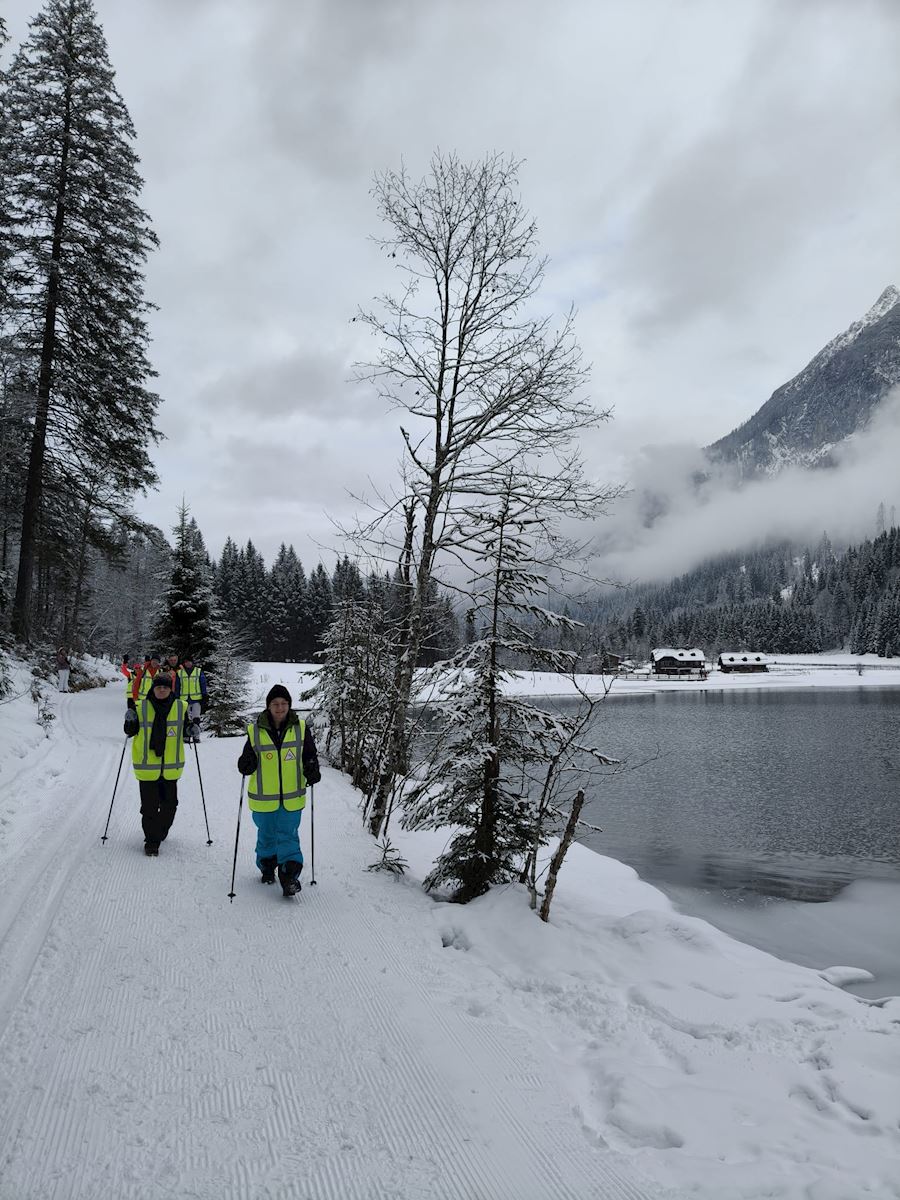We reden door het magische landschap naar de pistes. De langlauf- en loop groep ging lopen rondom de Jagersee - een heel mooi meer - waar je om heen kan lopen en waar je ook hele lekkere apfelstrudel en zo kunt eten.