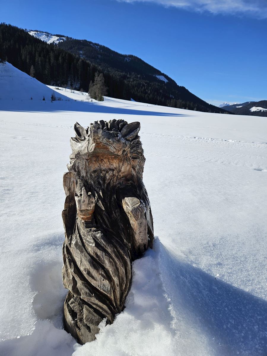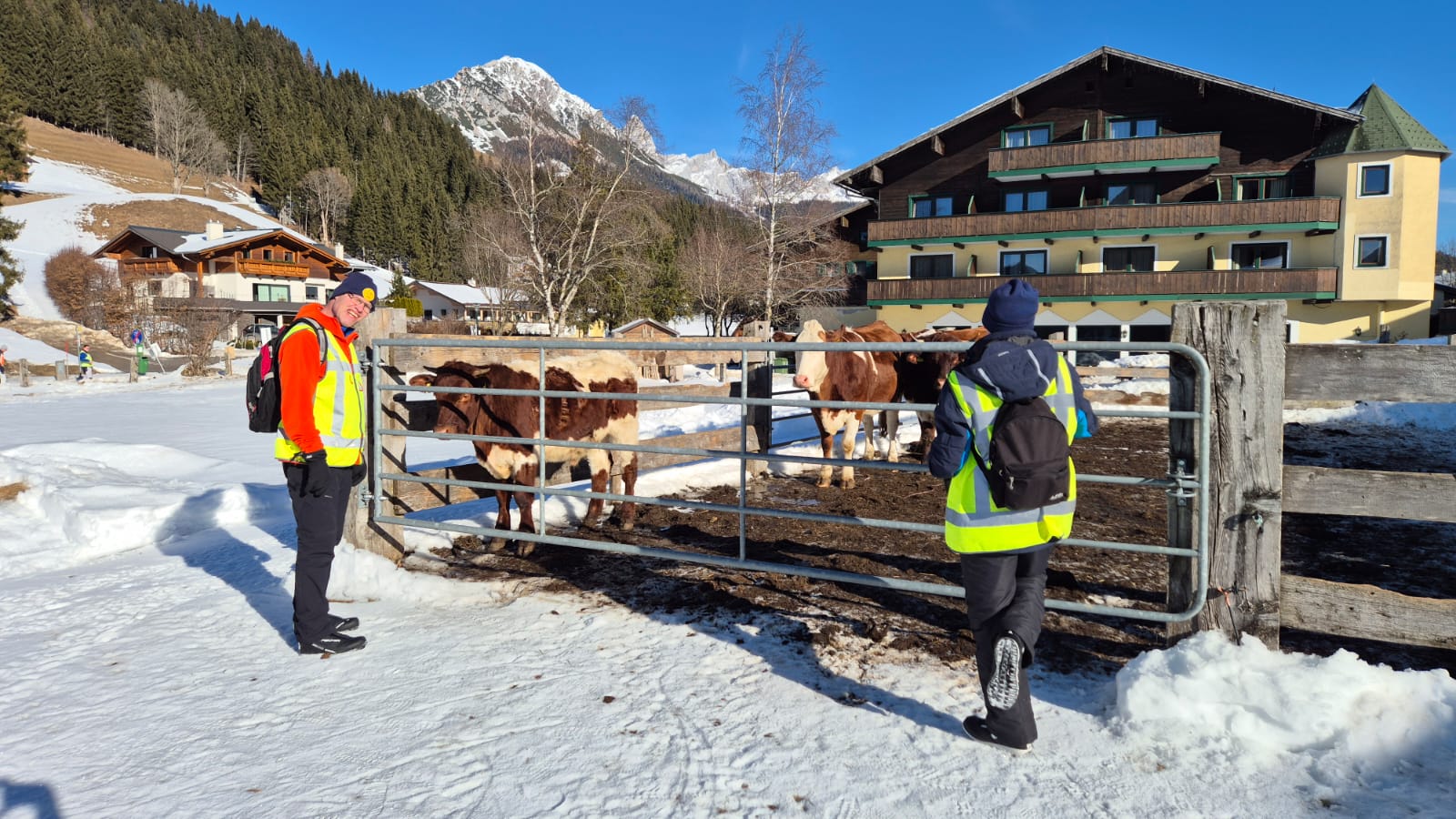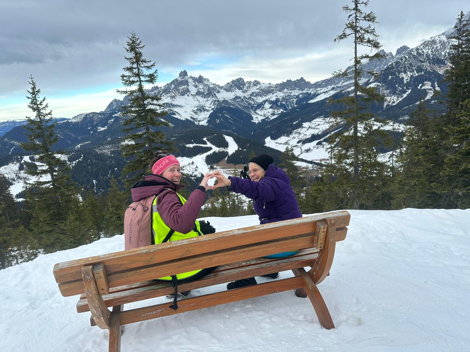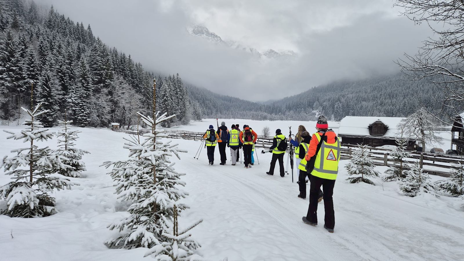 We reden door het magische landschap naar de pistes. De langlauf- en loop groep ging lopen rondom de Jagersee - een heel mooi meer - waar je om heen kan lopen en waar je ook hele lekkere apfelstrudel en zo kunt eten.