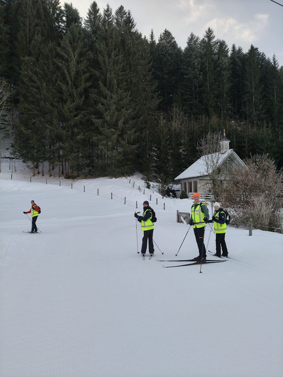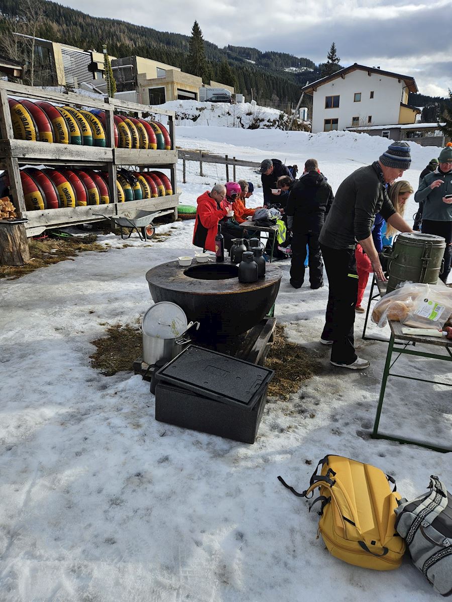 De groep van langlaufers startte op een ander plek als de skieers. De langlauf groep begon met een lekkere kop koffie - waarom haasten?