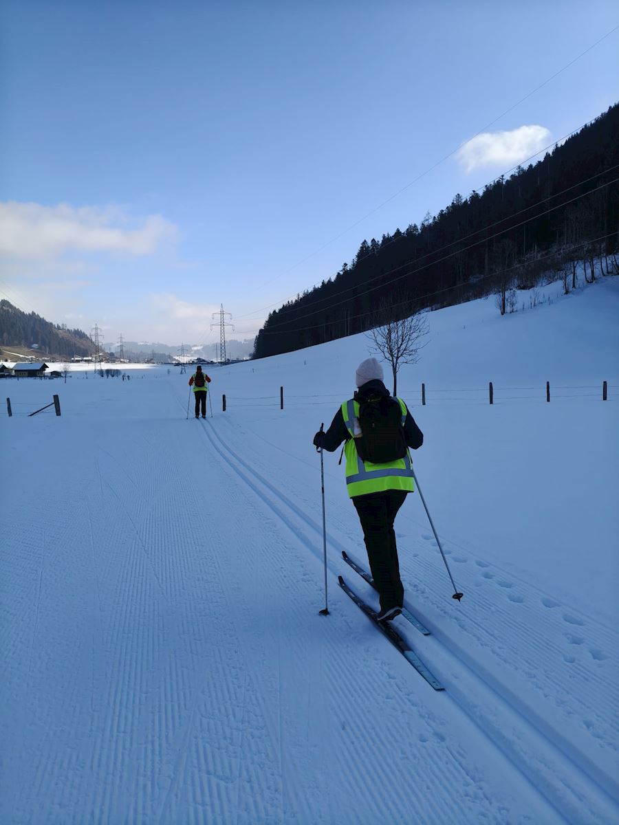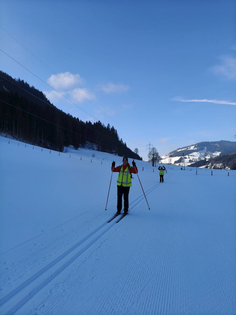 Uiteraard konden we niet starten zonder een goede warming - up. Rondom Flachau hebben we heerlijk gelanglaufd - uiteraard met de nodige uitglij partijen. Maar dat mocht de pret niet drukken.