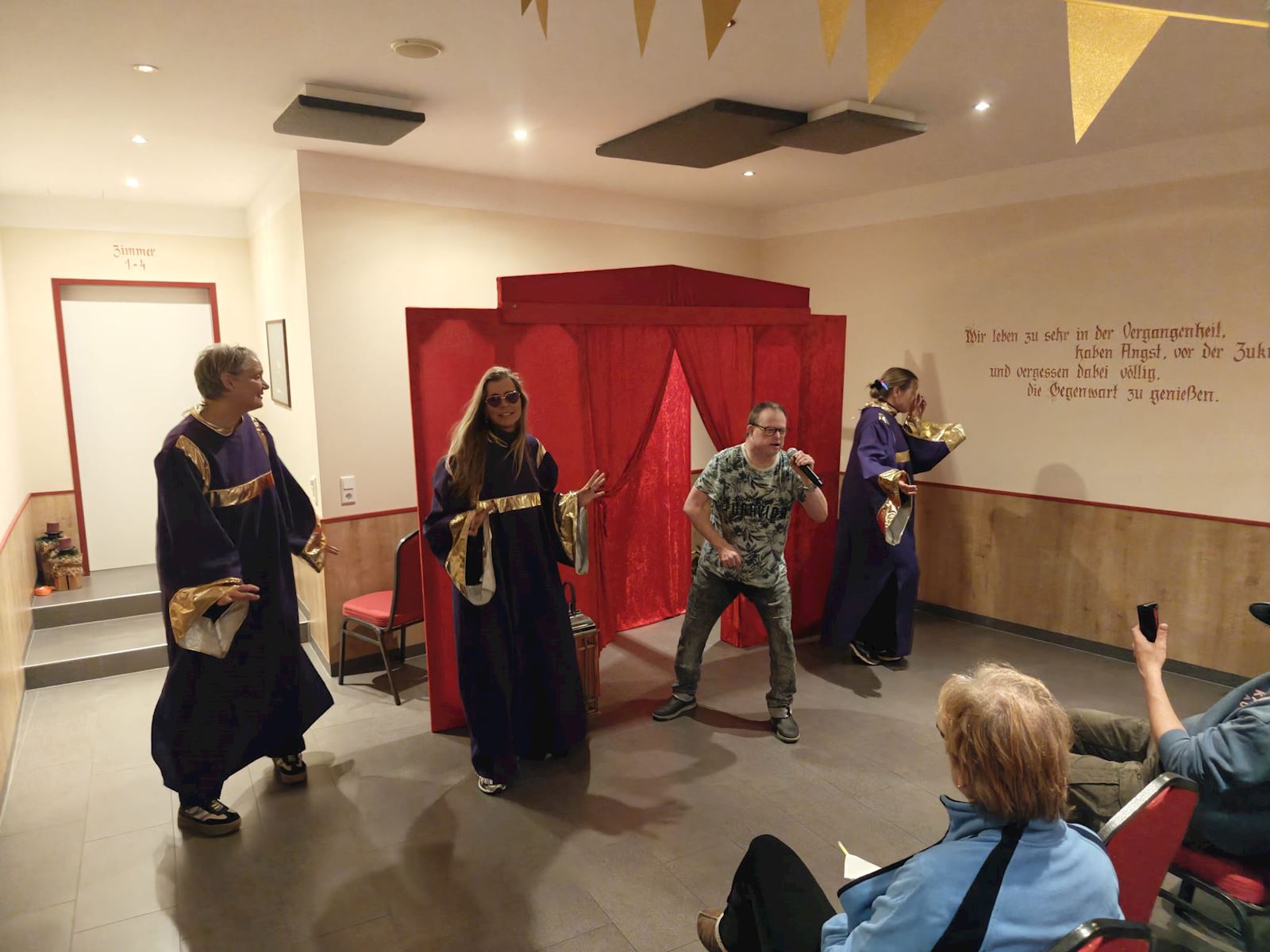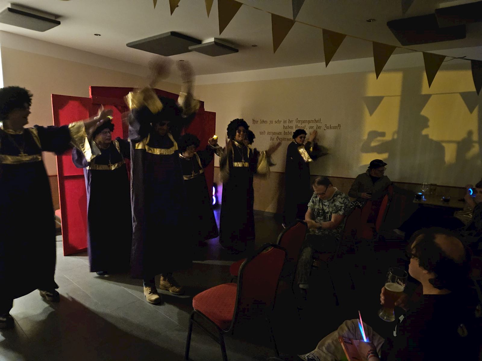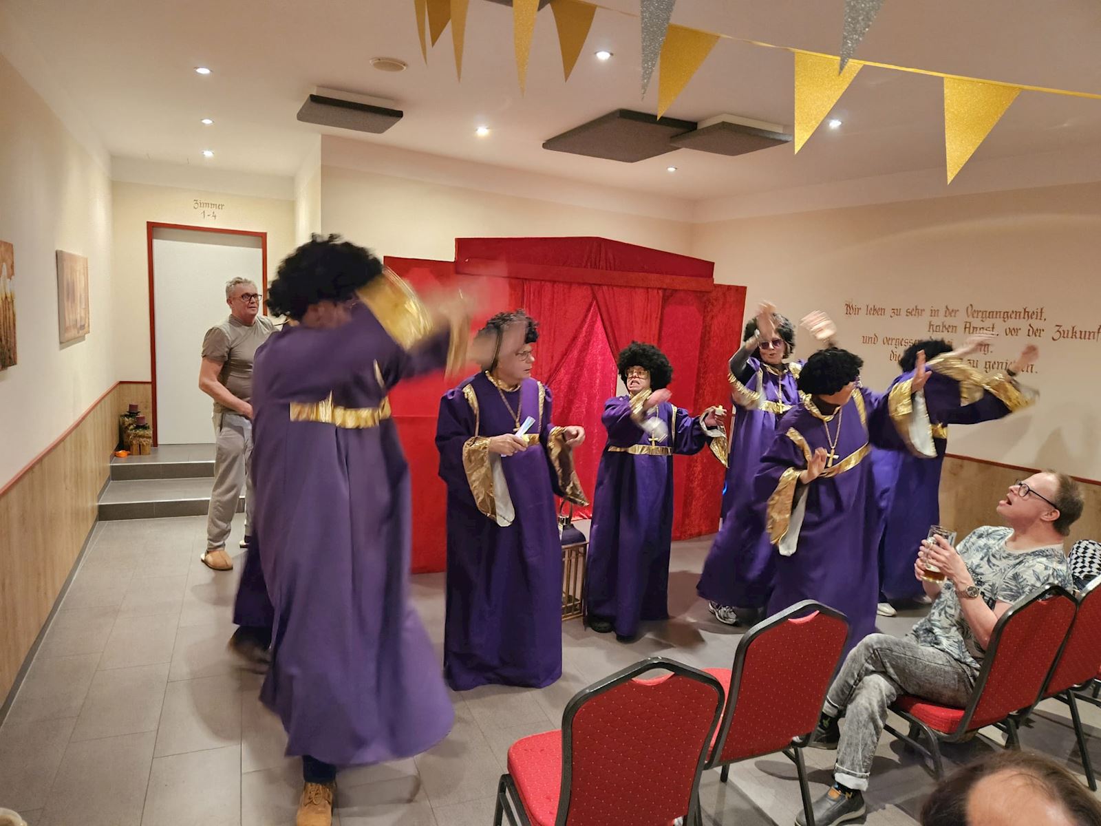 Toch een paar woordjes over wat je gaat zien inzake de Bonte Avond: swingende nonnen. Duitse Schlagers, polonaises, unieks solo optredens, het bouwen van een theater (jawel!) en nog heel veel meer.