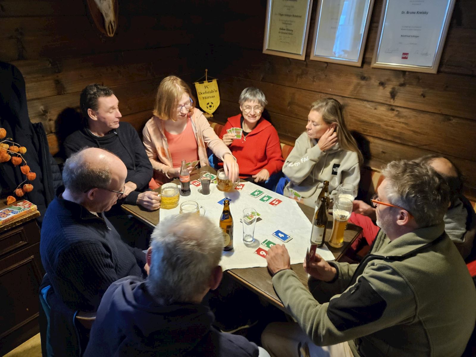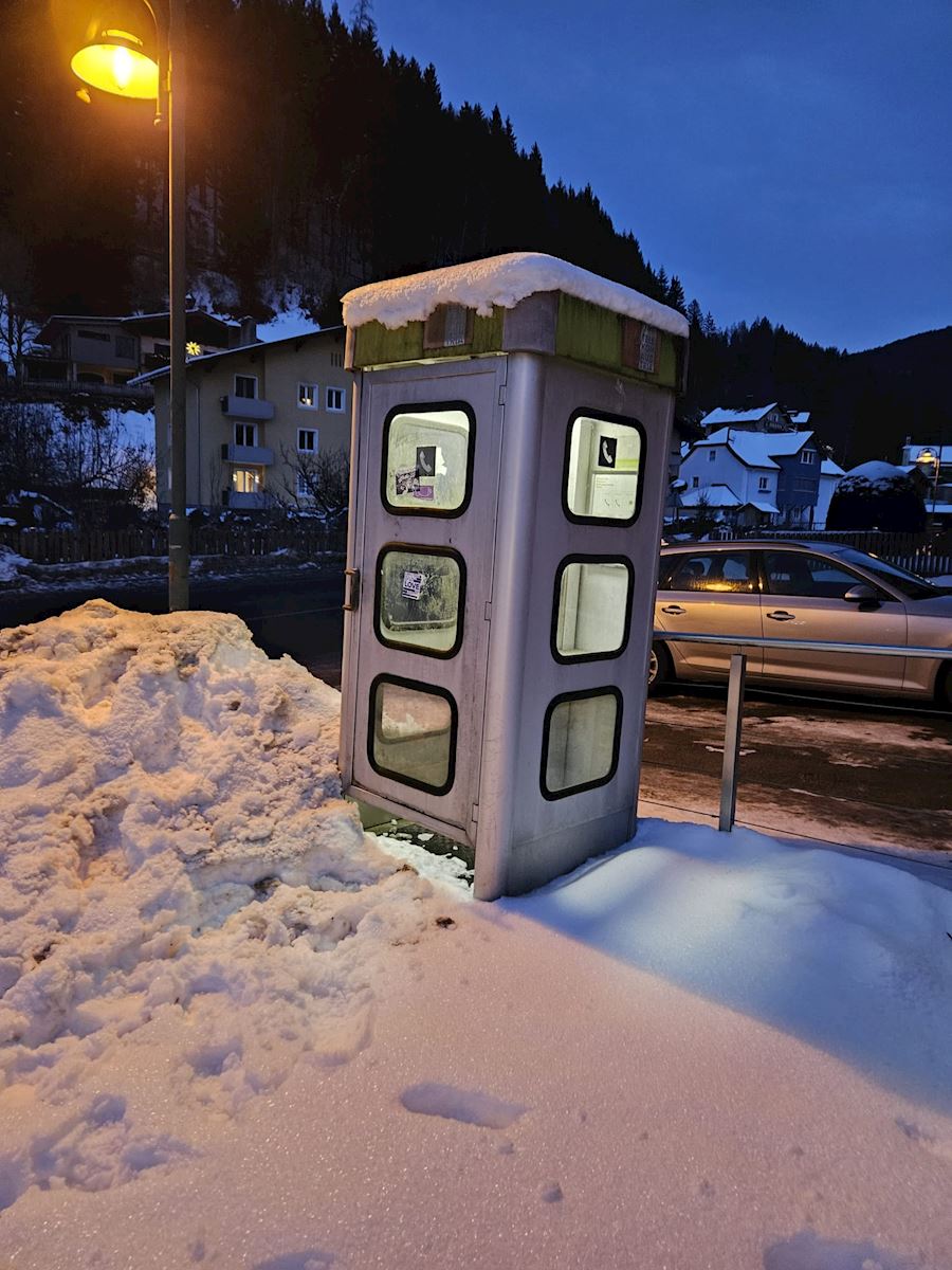 Alvorens naar het avond eten te gaan zijn we naar de stube in het dorp gegaan - daar hebben we lekker spelletjes gedaan & een drankje genomen. Dat was bere gezellig. Op de terugweg kwamen we langs iets wat veel mensen niet meer kennen, namelijk een telefoonhok. We hebben 'em (nog) niet getest.