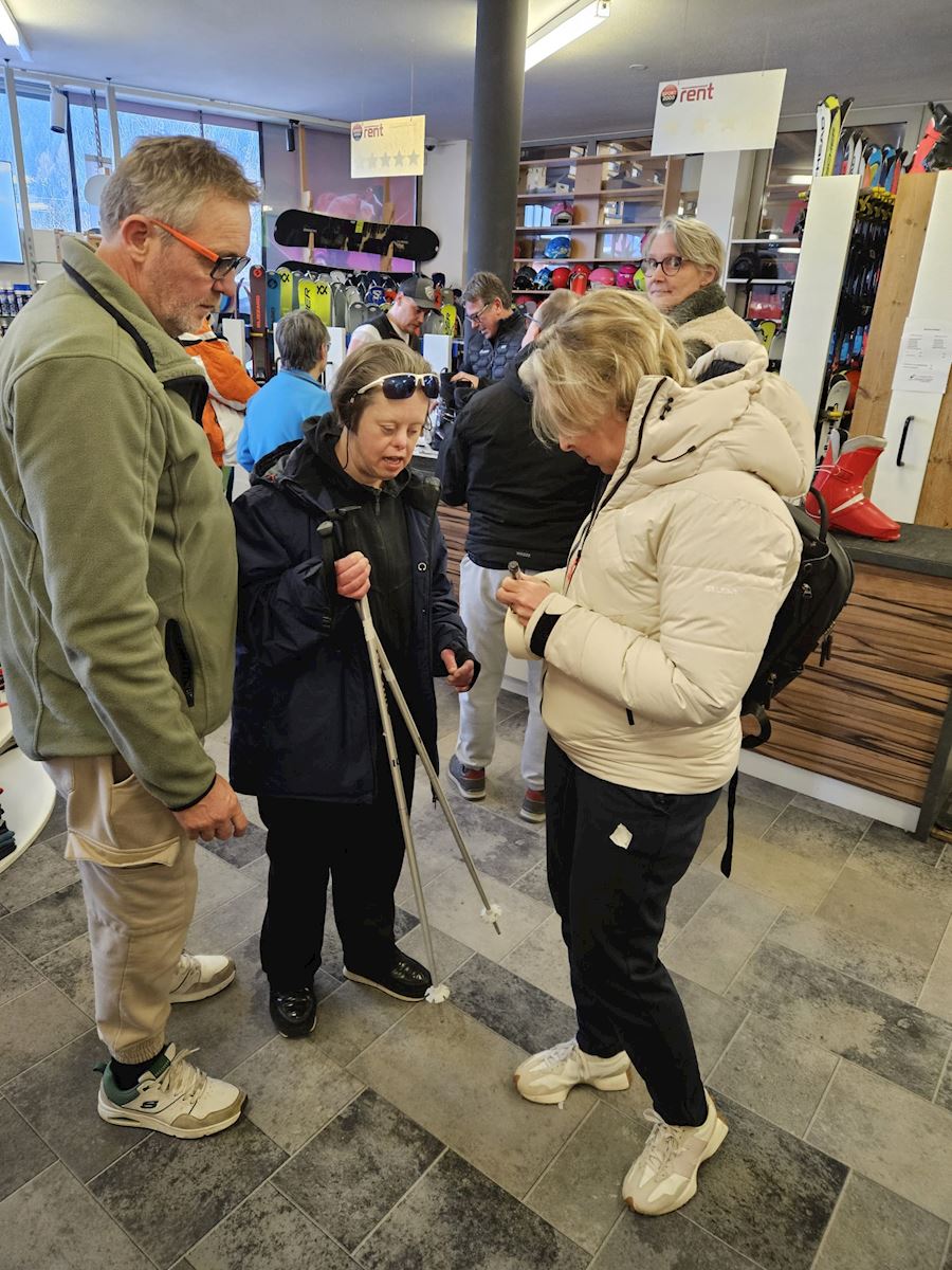 Uiteraard was het daarna tijd om de ski-spullen op te gaan halen. Dat ging verbazingwekkend goed. Het was een beetje een georganiseerde chaos - echter, aan het einde had iedereen alle spullen die iedereen nodig heeft voor een fijne wek. Op elk stok, schoen of ski hebben we een naamplaatje geplakt - zodat we het allemaal op de piste weer terug kunnen vinden. Oftewel - morgen kunnen we los!